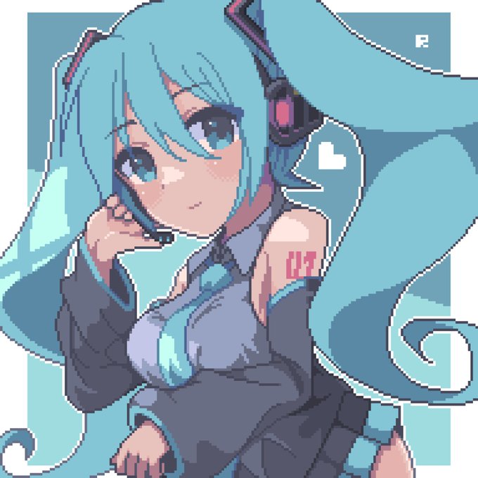 39 259 【初音ミク】 初めて描きました! (細かい装飾は省いています) #初音ミク #pixelart #ドット絵 22/03/30 22:41