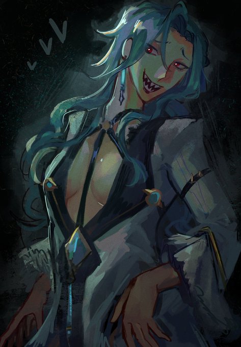 Day sixteen: Redraw of that one Fyolai official art i dont quite like how this turned out but have it anyways (ill def repaint this one day) #dottore #Dottobina #Columbina