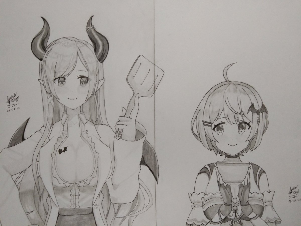 Just done drawing with the dynamic demon/vampire duo that i love the most ❤️ #しょこらーと #メルArt #hololivefanart