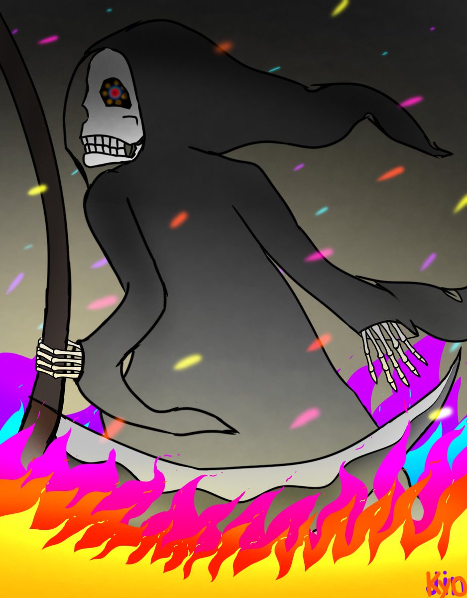 2 13 「██を燃やす死神」 #強靭な絵 #絵描きさんと繋がりたい #Halloween #HappyHalloween #halloweenart #reaper #死神 22/10/31 16:50