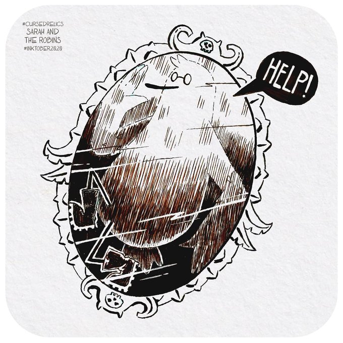 🌑🌒🌓#mirror🌗🌘🌑 Don't ask me why the robin touched the cursed mirror, I have no idea...now he's trapped, please send help. . . . #inktober #inktoberlist #inktober2020 #ink #traditionalart #traditionalartillustration #mirror #cursedrelics2020 #farbercastell #sarahandtherobins