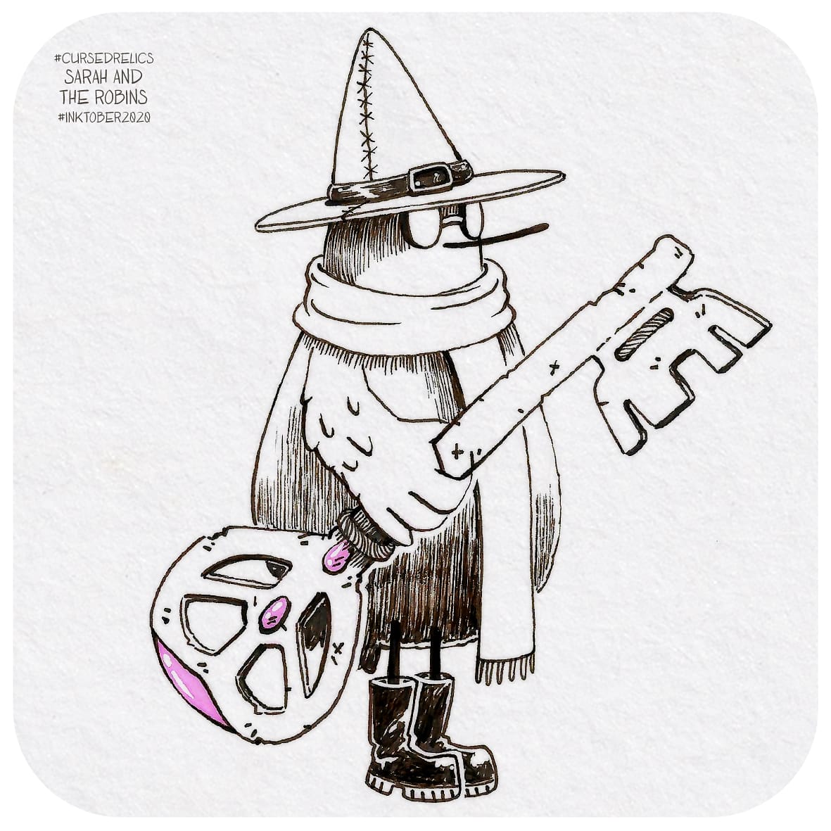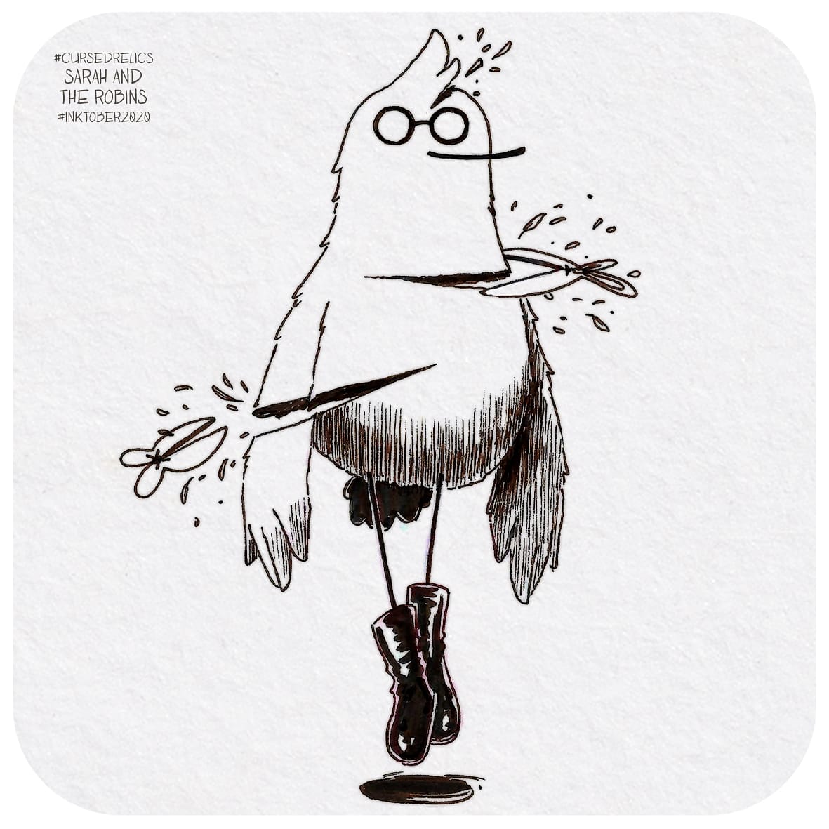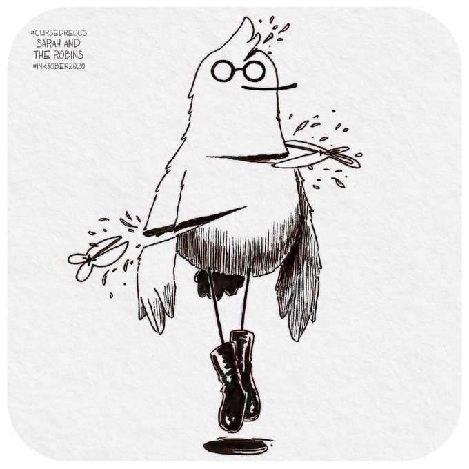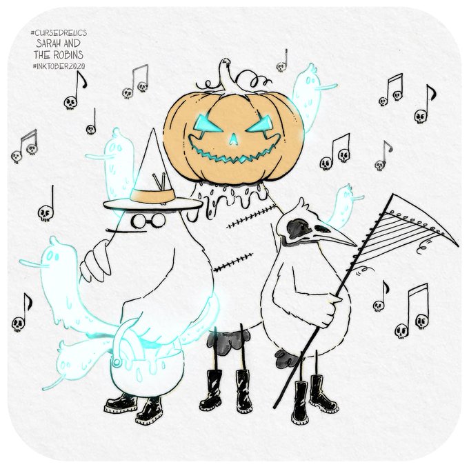 🎃🌛 🦇👻 Happy Halloween! 👻🦇🌜🎃 Featuring "Tiny Black Boots", Robinsland's favourite metal band ! 🤘🏻🤘🏻🤘🏻 . . . . #inktober #inktoberlist #inktober2020 #ink #happyhalloween #swissillustrator #illustratricesuisse #illustratricefribourgeoise #cursedrelics2020 #sarahandtherobins