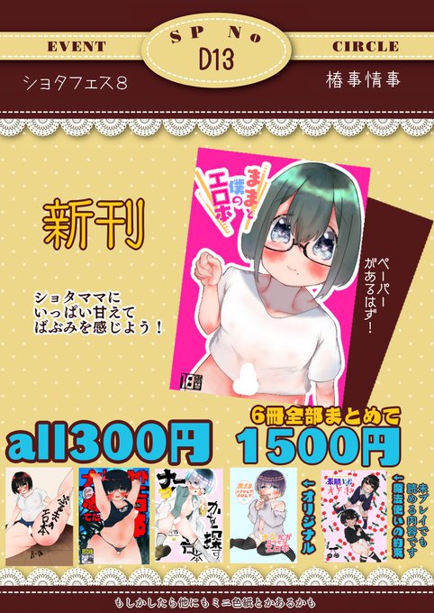 10月30日【ショタフェス8】お品書き D13:椿事情事 新刊サンプル→pixiv.net/artworks/92694… ハロウィンっぽいペーパとかを用意する気でいるけどまだ絵描いてないのでどうなるか分からないです 是非遊びに来て下さい✌️✌️ 通販→tinnzi.booth.pm #ショタフェス8