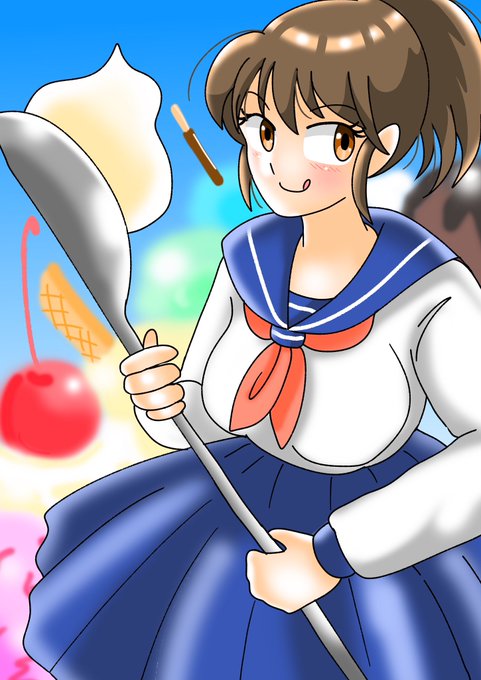 白スク+アイス アイスが美味しい季節になったね! #絵描きさんと繫がりたい #オリジナルイラスト