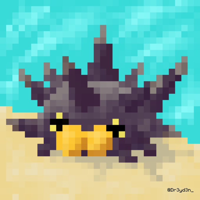 I saw #Calyrex and the first thing I thought was to slap #Pyukumuku on its head. #PokemonDirect #pixelart