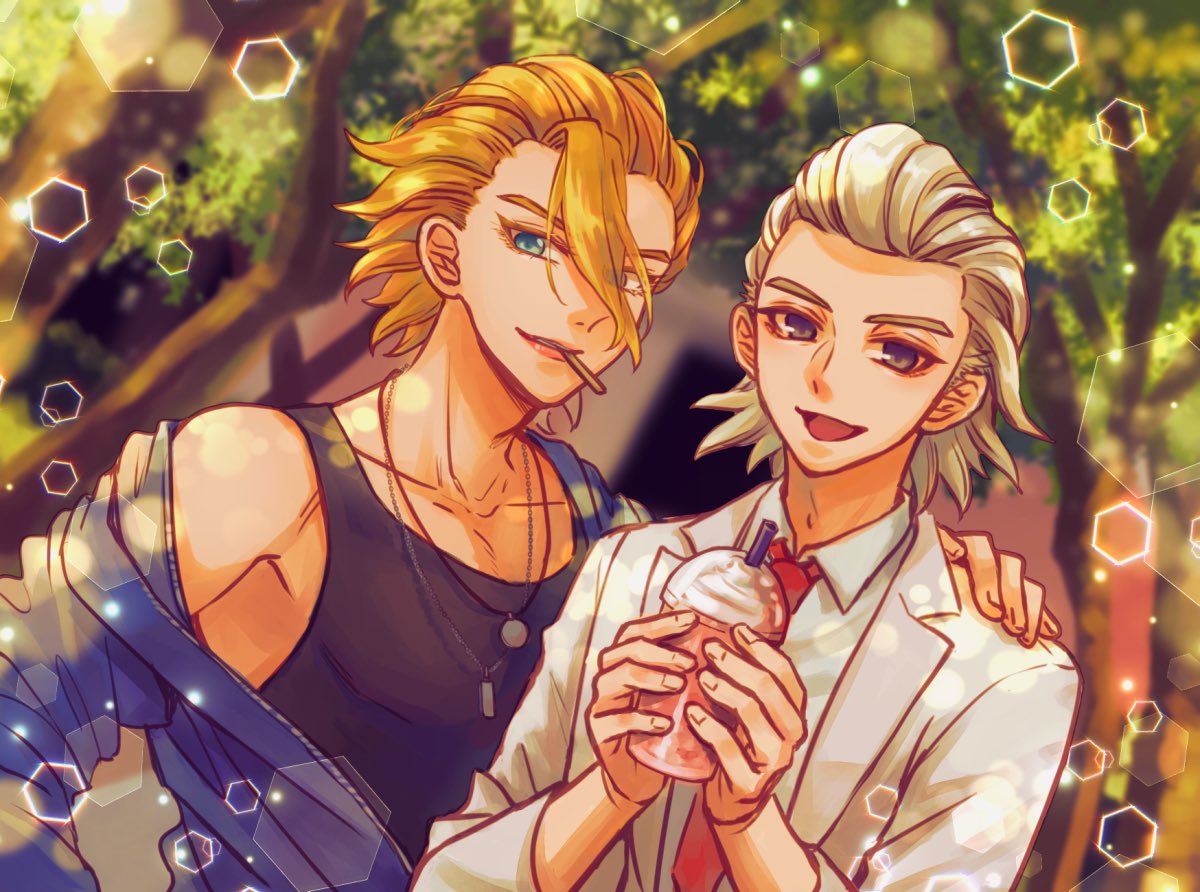 #千ゲ48手かいてみようぜ 【13.後ろ茶臼】を描きました! 千ゲンはお月見をする話です(?)💚💜 素敵な企画に参加させていただきありがとうございます🙏☺️ poipiku.com/6264102/752262…