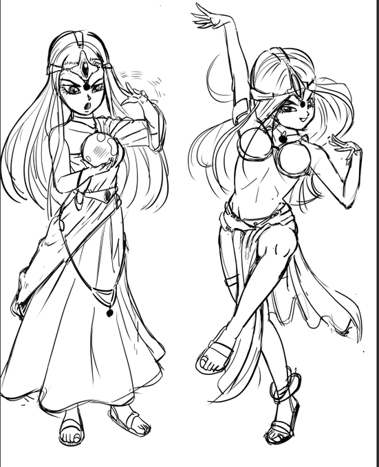 マーニャとミネア🖊️ 4未プレイなので昨夜帰ってきてから調べながら描きました😅 踊りとか占っている?姿は感覚的に描きました😅 間違っていたら🙇♂️ 本日はお休み😆✨ #ドラゴンクエスト #ドラクエ4