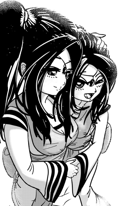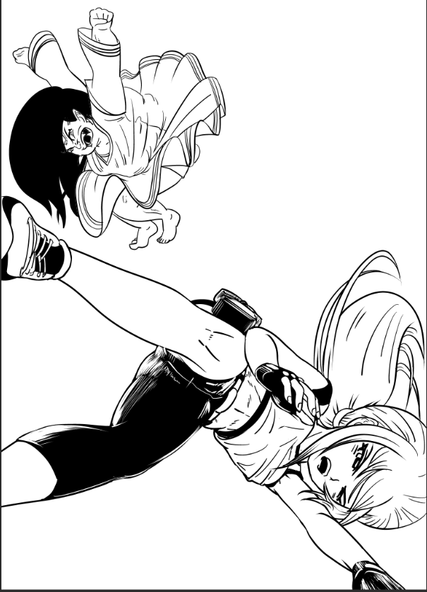 「おのれイザナミっ‼️」 朝の思いつき構図練習がてら、イザナミvs紗々羅(姉)を落書きからペン入れしてみました✨ 時間みて効果線、陰影入れて仕上げたいと思います🖊️ 仕事っ💦