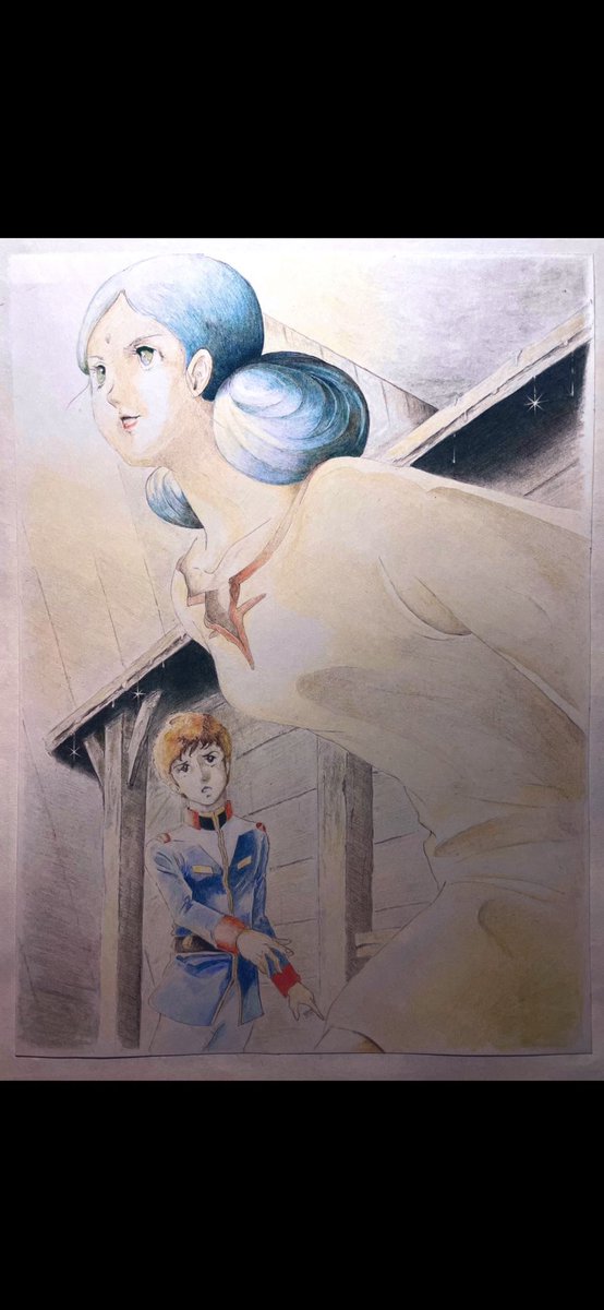 11 68 色鉛筆画の過去の依頼絵で手元に無いんですが😅 安彦良和先生の作品(元は水彩❓)で雨上がりのアムロ・レイとララァ(模写)☺️ 色鉛筆もまたやりたいなぁ 23/04/04 04:13