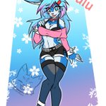 It's Summer Time! Finally hit that mood to binge art again. Starting off the summer with Yoro in a new swim suit! She's a happy Shiba Pom cross breed. #furryart#swimsuit#furry#pinupart