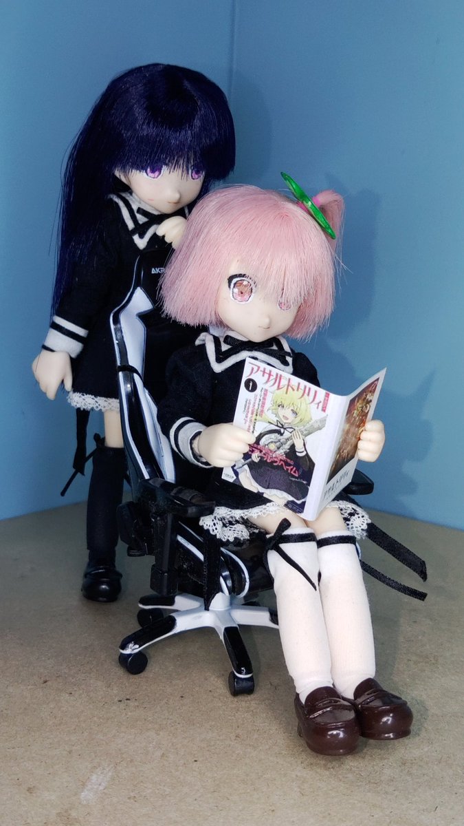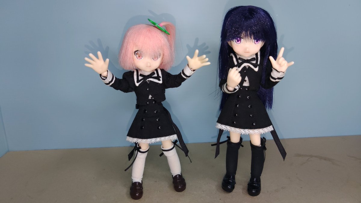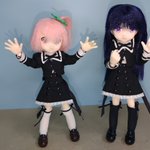 「こ、これでいいかしら」 「やっぱり!お姉さま、紫が似合いますよね」 「・・そ、そう?・・」 「今晩はこの格好でパジャマパーティーしましょう! お菓子いっぱい持ってきて」 「・・夜更かしは感心しないけど・・ まぁ、いいでしょ」 「やったー!」 #アサルトリリィドール部