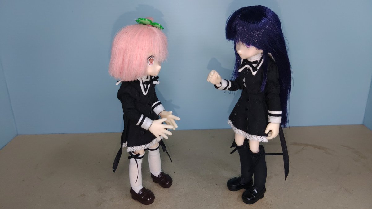 #アサルトリリィドール9周年 「おめでとー!」 「・・・」 「どうしたんですか、お姉さま?」 「私たちがお祝いしていいのかしら」 「お祝いするのは自由ですよ」 「・・・そうよね」 「じゃ、一緒に。おめでとー!」 「おめでとう・・」 #アサルトリリィドール部
