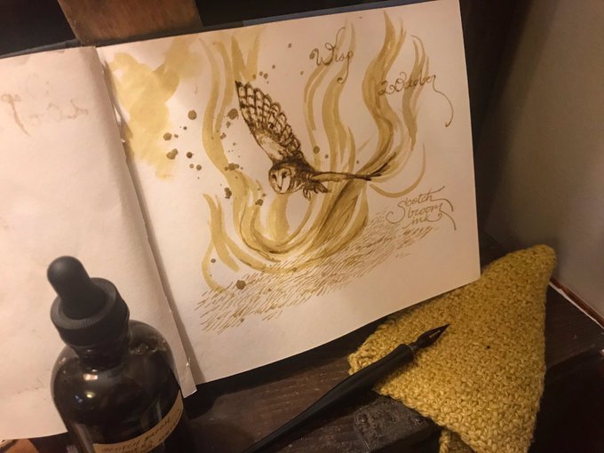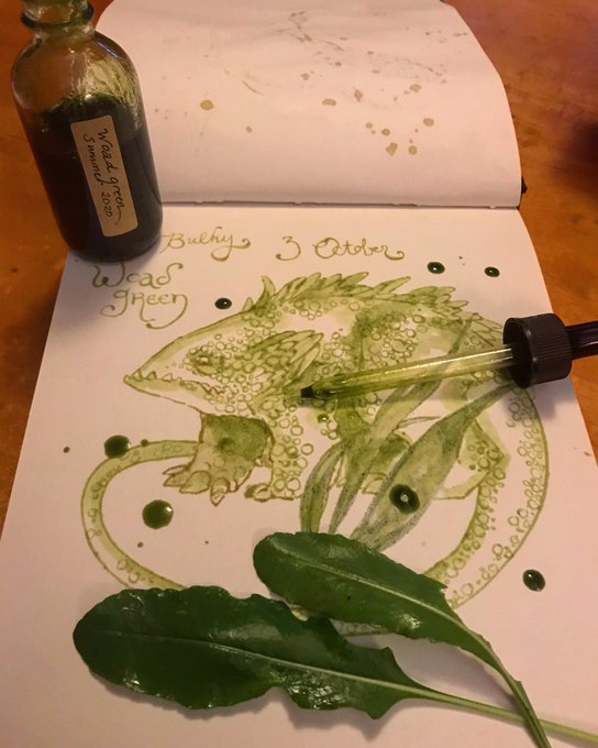 #wisp for #inktober day 2 Featuring #scotchbroom #naturalink #botanicalpigments #makethingsfrominvasivespecies #naturalpigments. Yarn also dyed with Scotch broom.