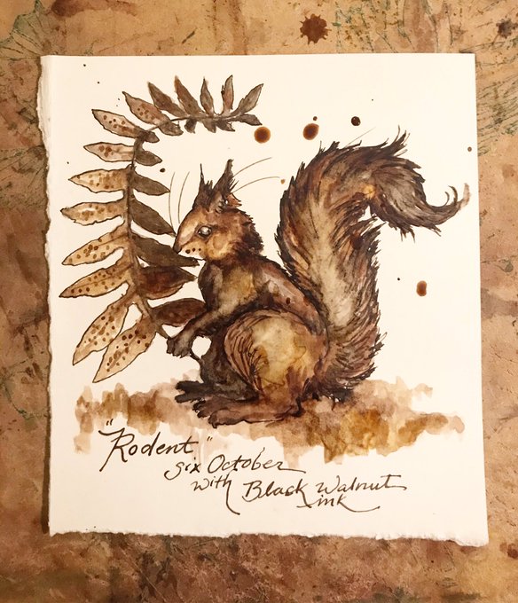 #rodent for #inktober #inktober2020 in homemade #blackwalnutink Again, colour variations from pH #homemadeink #naturalpigments #naturalinks #botanicalpigments #ink #squirrel #illustration #drawing