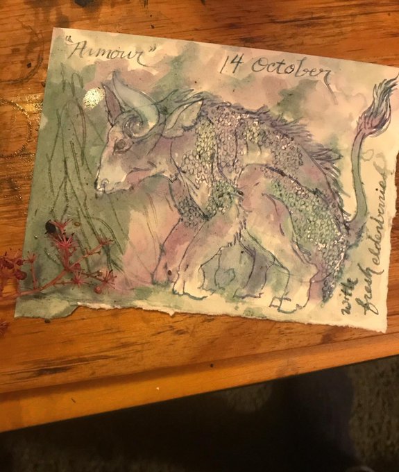 #homemadeink from fresh #elderberries for today's #inktober #inktober2020 prompt #armour. #minotaur #mythicalcreatures #ink #berryink #elderberryink #drawtober #drawing #sketch
