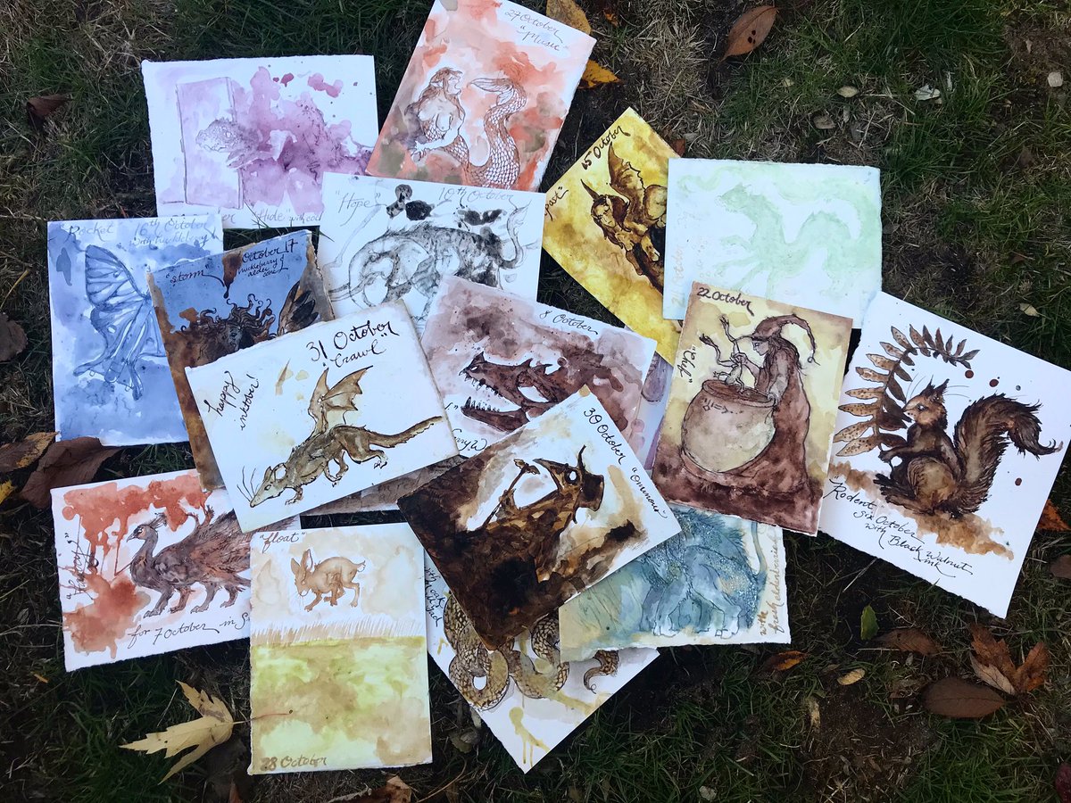 That's a wrap! Happy #inktober #inktober2020 #drawtober everyone! October 30 and 31, ominous and crawl. The many colours of #naturalpigments #homemadeink #botanicalink #botanicalpigments #ink #drawing #sketch