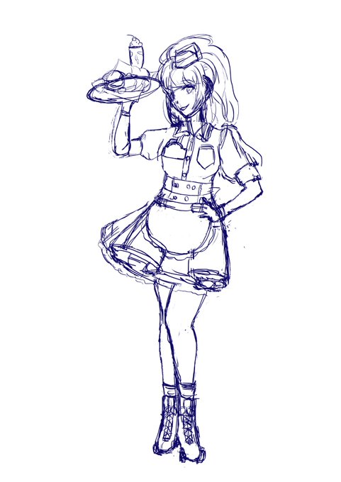 #このタグを見た人はラフ画とその完成絵を見せる アドバイスあればいただきたいのであげてみます。 ラフ→下書き→線画→完成絵です。 ラフは何度も線を引いて輪郭を探り出していく感覚で描くので大雑把。明るめの印象にしたかったので線の色は紫をメインに使ってます。