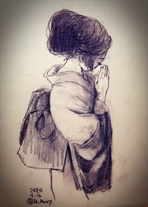2 7 祈る女性。鉛筆画。#一日一絵 20/04/16 22:35