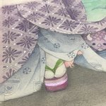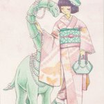 1 9 着物の影に隠れる恐竜たち。キラキラ顔彩、こっそり使っている。 #恐竜 #着物 #イラスト 22/03/14 22:39