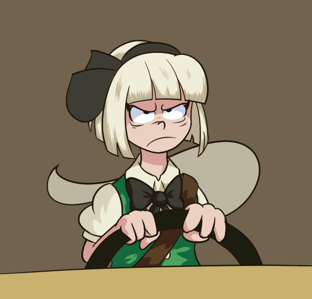 Grumpy Youmu behind the wheel