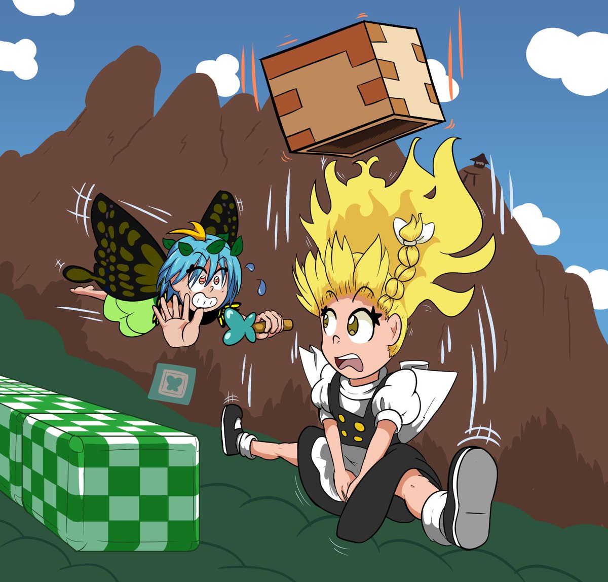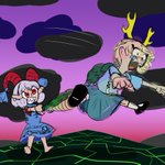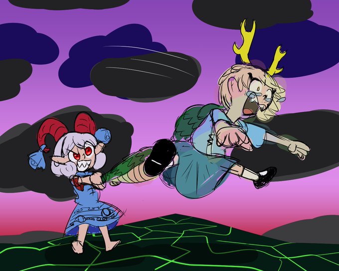 Yuuma Toutetsu doing a "Giant's Toss" on Yachie Kicchou Or, you know; So long, gay Yachie