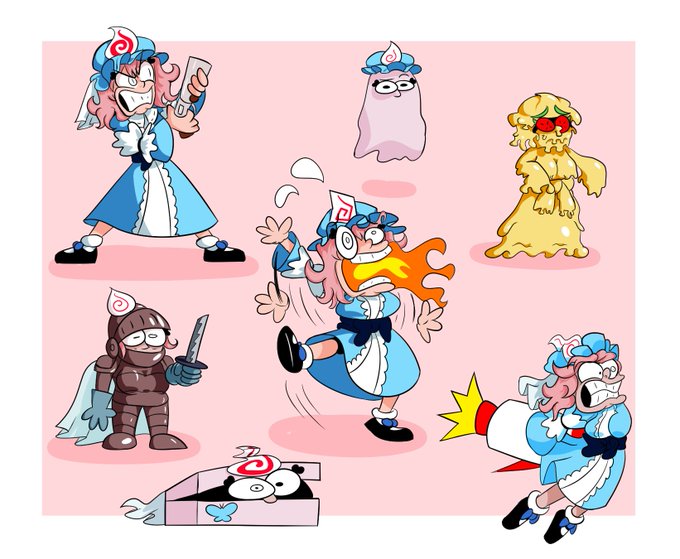 Yuyuko Saigyouji from Touhou with several Pizza Tower transformations