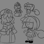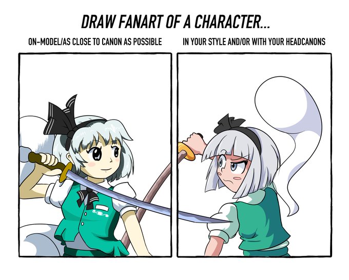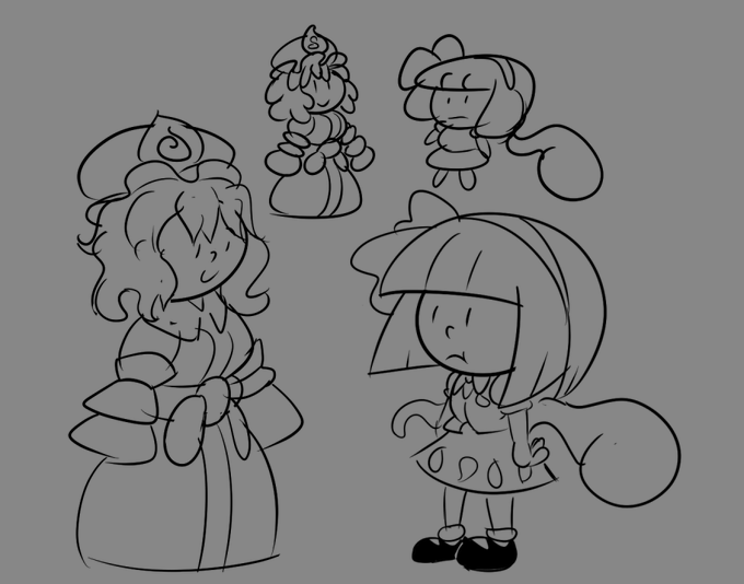 29 110 Roundish character design attempts with no reference whatsoever. I think round fits Yuyuko and sharp/triangular with round fits Youmu... 23/07/01 03:55