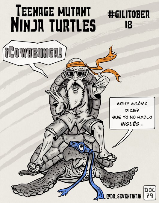 ¡#Gilitober 18! Son adolescentes, son ninjas, aman la pizza, viven en las alcantarillas, le patean el culo al Clan del Pie y nos encantan a todos. ¿No hace falta presentarlas, verdad? #Inktober #TMNT #DragonBall #MutenRoshi #tintubre #fanart