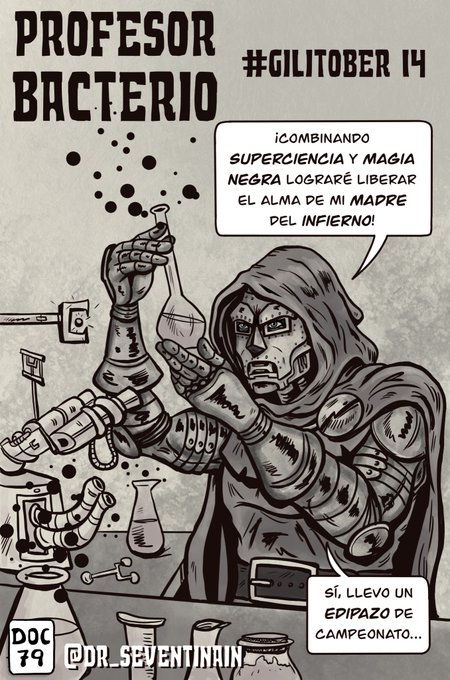 ¡Sapristí, Jefe, el #Gilitober 14! De la pluma de Ibáñez salieron grandes personajes, pero sin duda todos tenemos un cariño especial al entrañable mad doctor de la T.I.A. y a sus disparatados inventos. #Inktober #Marvel #DoctorMuerte #Latveria #Mortadelo #fanart