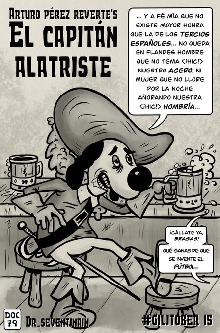 15 gilitobers después, por fin traemos al héroe español definitivo, protagonista de una divertidísima serie de novelas, e interpretado en la gran pantalla por el talentoso Viggo Mortensen. ¡Pardiez! #inktober2020 #PerezReverte #Dartacan #Mosqueperros #Tintubre #fanart