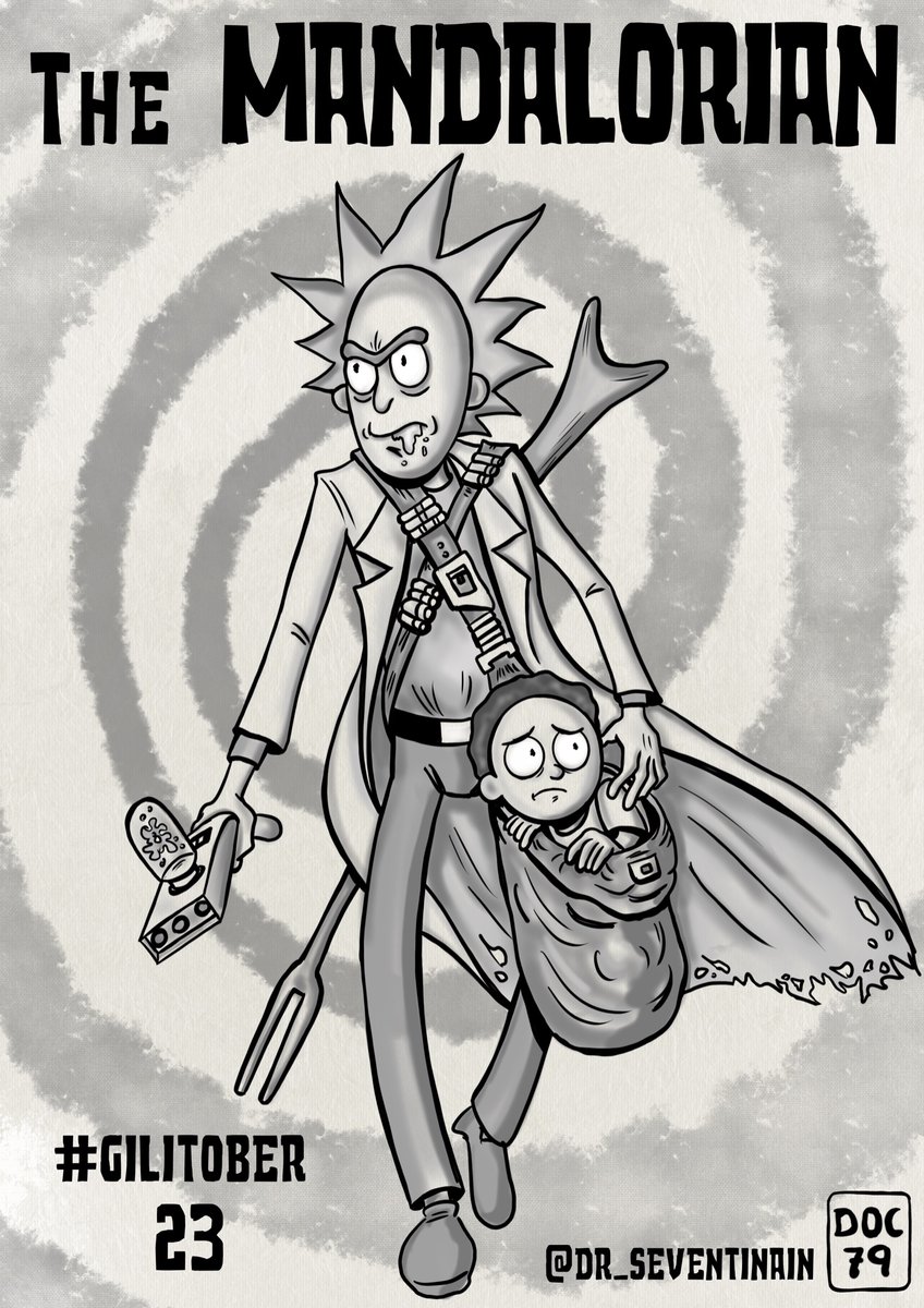 ¿Qué vais a hacer vosotros mañana? Quizá el #Gilitober 23 pueda daros una pista de a lo que al menos yo pienso dedicar todos mis pensamientos, desde que me levante hasta que me acueste... #inktober2020 #Mandalorian #BabyYoda #StarWars #RickandMorty #Disney #fanart