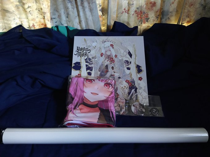 It's here!🎉I'm so glad the Birthday Merch arrived safely after so long, everything looks so good! Still waiting on the frame for the vinyl but the badges and poster are all settled in their new homes! (the daki is in a drawer cause I'm too embarrassed to use it) #callillust