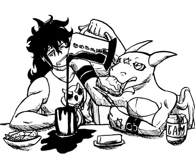 Digitober 17: Coffee "I think you've had enough..." Challenge by @/Alycoris #digimon #デジtober #DEJItober #デジモン #inktober2022