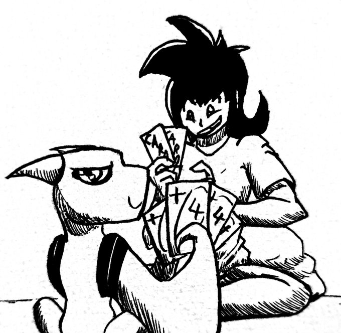 Digitober 26: Cards In spite of all evos they have, the only cards they know are card games. Challenge by @/Alycoris #digimon #デジtober #DEJItober #デジモン #inktober2022