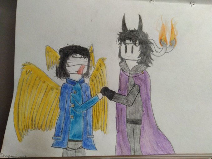 They can't kiss because sapnap would burn Q so instead they just hold hands ___ I still need to practice with the colors but i think it isn't that bad :3 ___ #quackityfanart #sapnapfanart #fiancetwt #quacknap