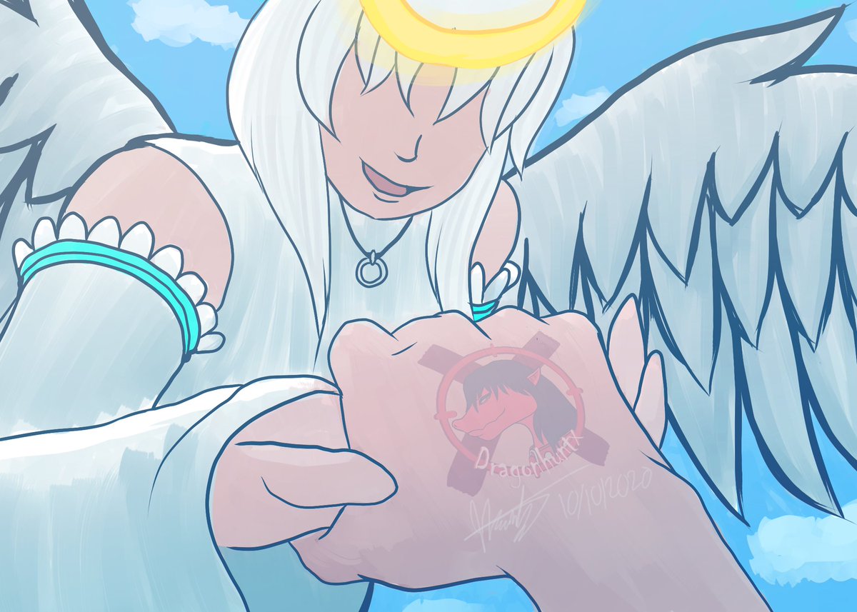 [Inktober 2020] Day 10 - Hope "There are better places to take a nap than on the ground y'know~ Give me your hand." Ref: youtube.com/watch?v=WlYKlr… Char/Art: Dragonhuntx #inktober #inktober2020 #hope #art #digitalart #drawing #doodle #angel
