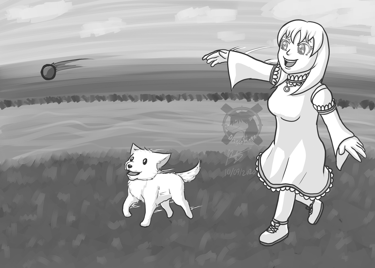 [Inktober 2020] Day 25 - Buddy { LOOK AT HIM! ISN'T HE JUST ADORABLY THE BEST?! Bell and her little pupper are the best of buddies. Another bleh, lazy day, but have more cuteness. Character/Art: Dragonhuntx #inktober #inktober2020 #art #digitalart #drawing #buddy #puppylove