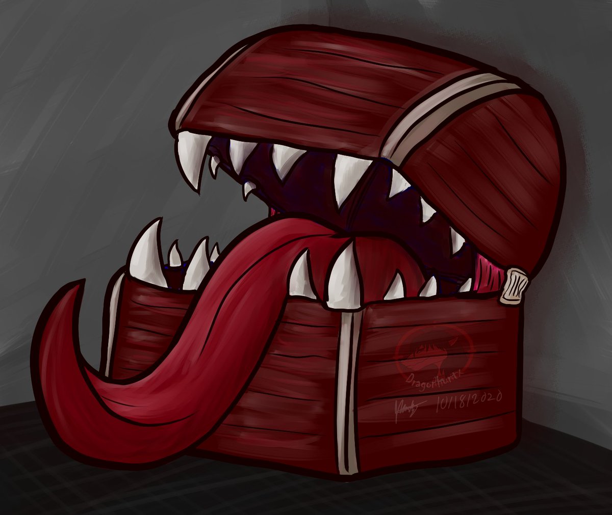 [Inktober 2020] Day 18 - Trap It's a lazy day, so have a lazy mimic. Art: Dragonhuntx #inktober #inktober2020 #trap #mimic #art #digitalart #drawing #doodle #doodleart #treasure #monster