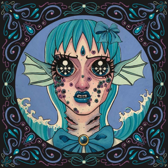 𝑊ℎ𝑒𝑒𝑙 𝑜𝑓 𝐹𝑜𝑟𝑡𝑢𝑛𝑒 𝐿𝑢𝑚𝑖𝑛𝑜𝑢𝑠 𝐶𝑜𝑟𝑎𝑙 𝑊𝑖𝑡𝑐ℎ Witch of the beach and Coral She uses her coral to spell magic on you to see fantasy waves and drag you to the undersea. #illustration #watercolor #characterdesign #イラスト #イラストレーター