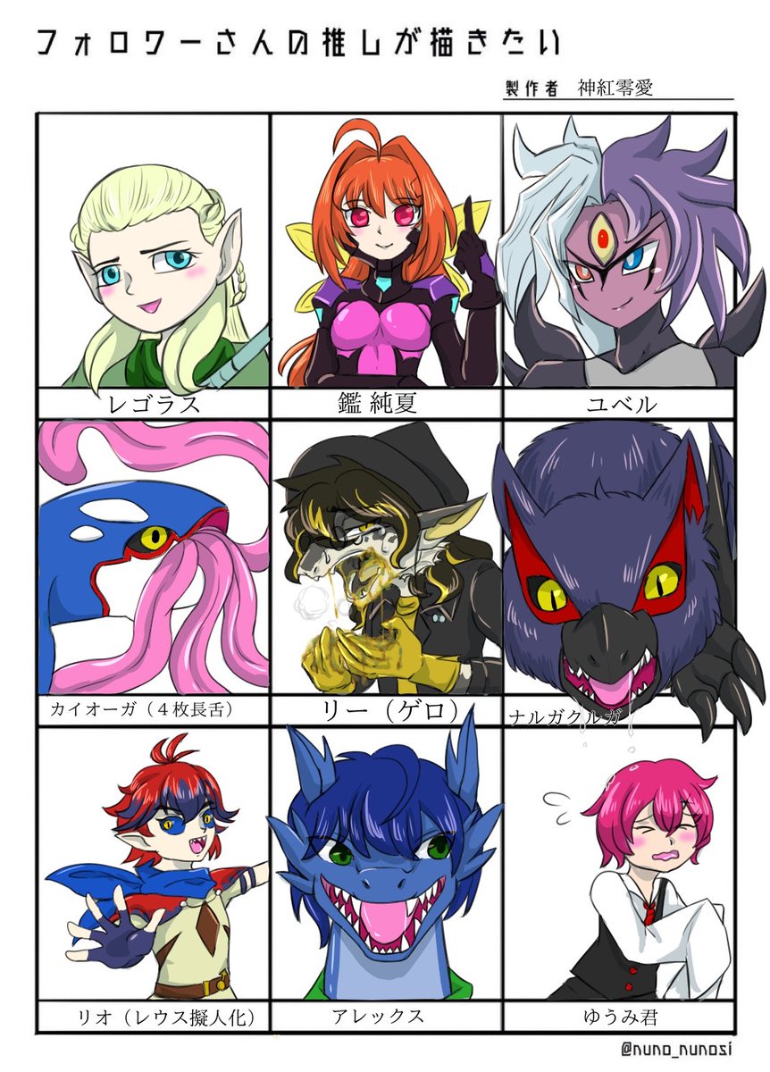 #フォロワーさんの推しが描きたい 大変個性豊かなメンツになって楽しいです 空いたマスには勝手に自分でキャラをピックアップして足させてもらいました