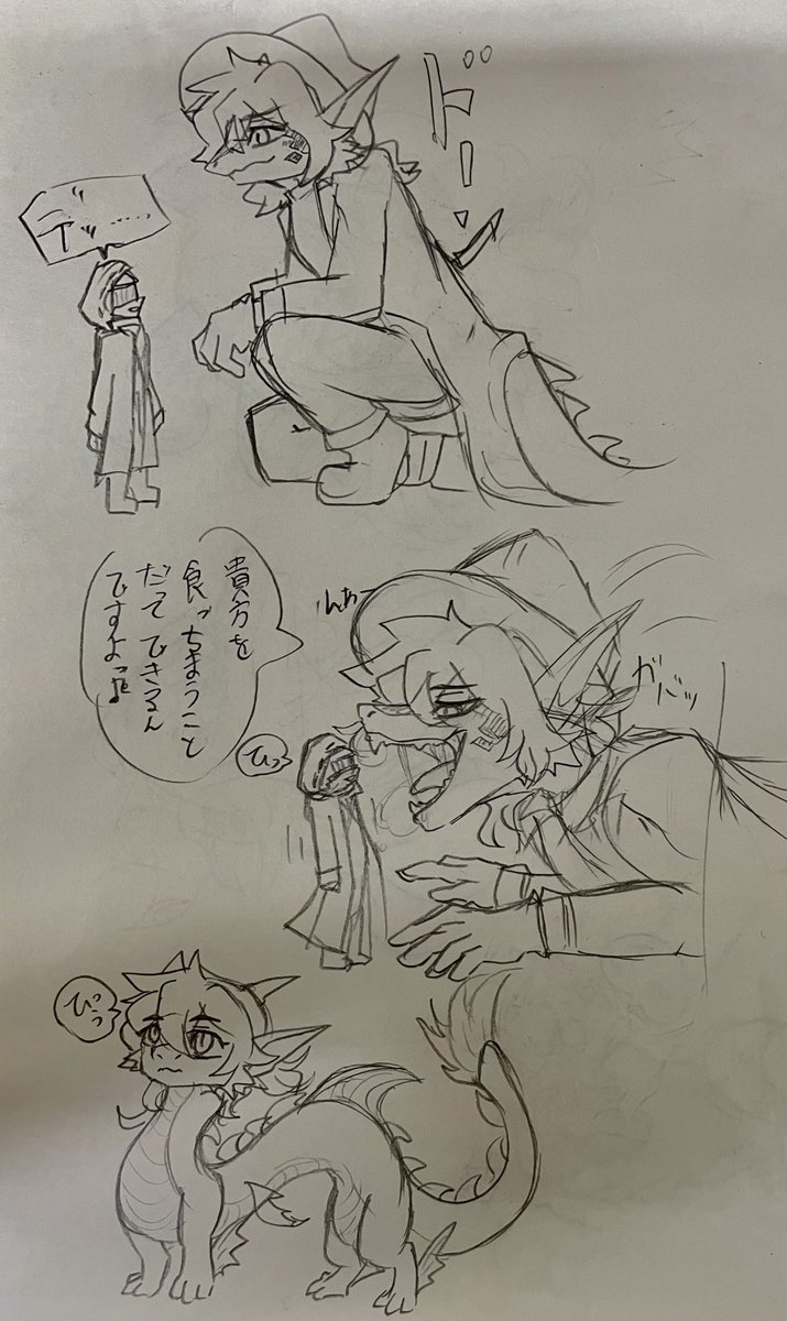 13 38 【commission】 #voreart スクサファ様(@10sukusafa )からのコミッションで描かせて頂きました! 他キャラクターの親御様は 捕食者:にくりぅ(ニック様 @NIKK6MAN ) 獲物:シャール(スクサファ様) サプラ(MisodeN様 @Saplakun ) ハクアイロ(白亜色様 @Milcandybox ) です ありがとうございました! 23/01/19 08:47