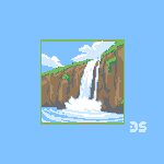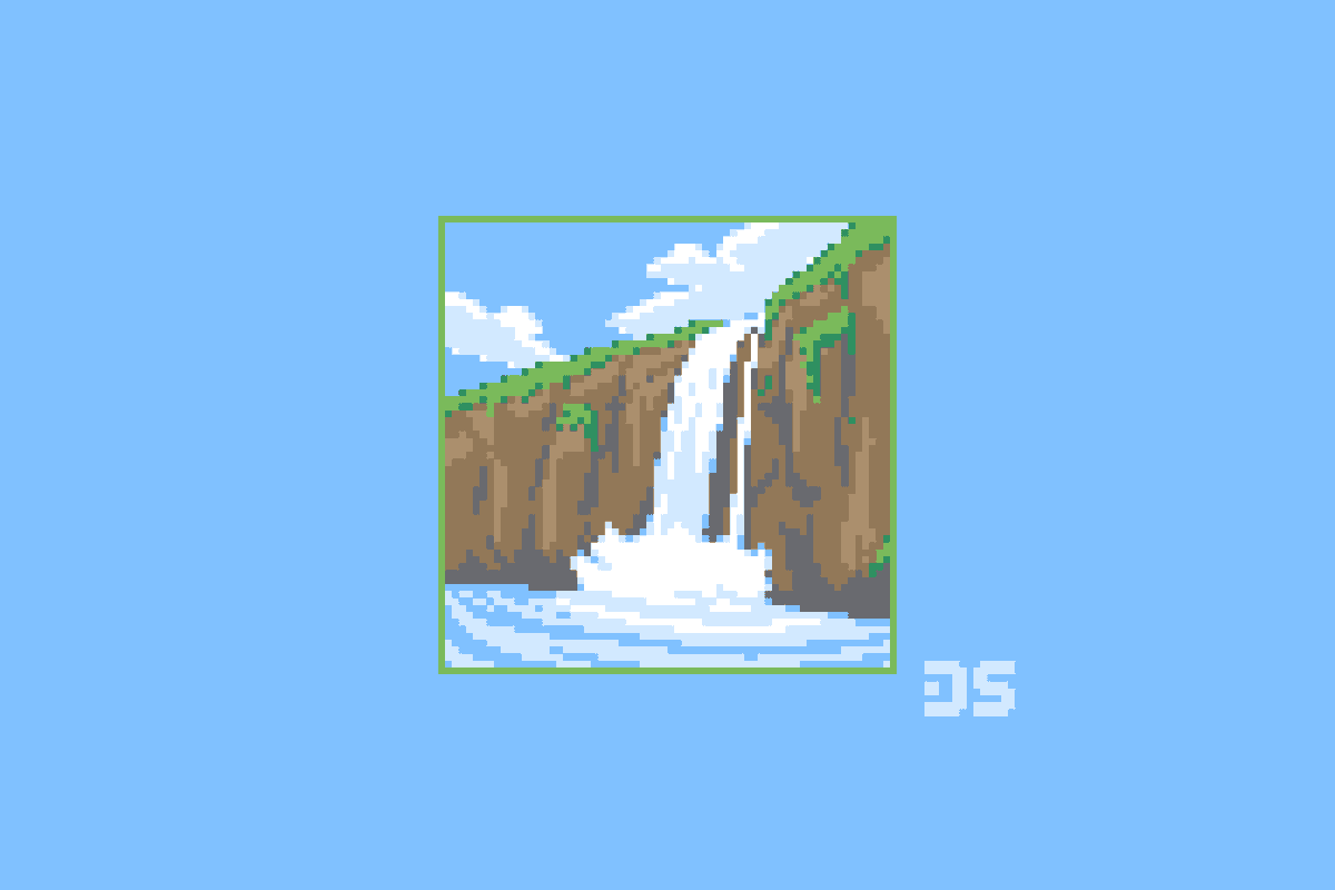 2nd art this time. Art for today: Waterfall #pixelart #drakesycamore #waterfall #64x64 #pixel #nature