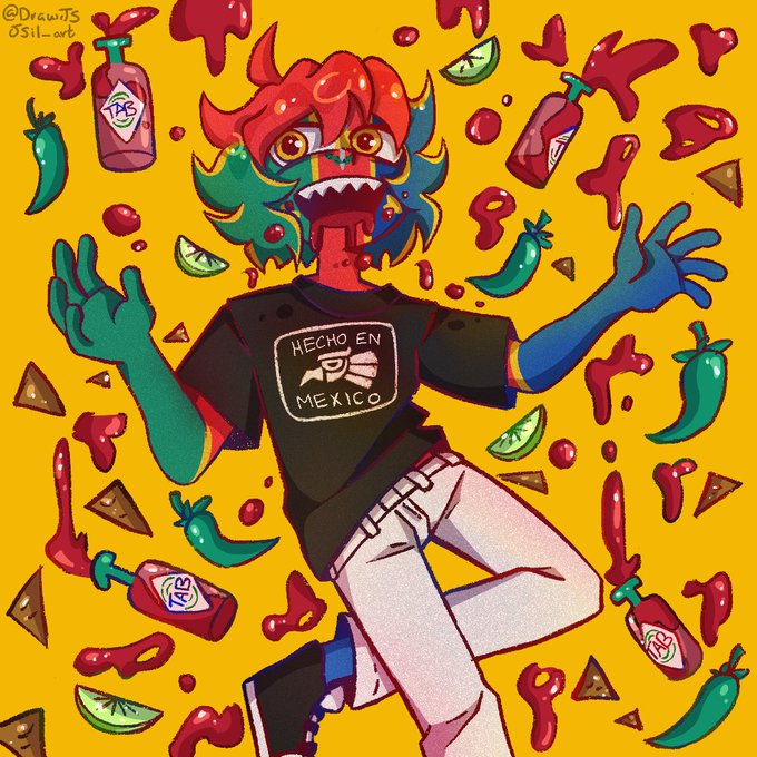 🌶🔥 Jalapeño 🔥🌶 Ya no lo había dibujado :,) y aquí lo tienen, en otra ilustración. Si tengo tiempo subo un cómic rápido de él, que son los que les gustan 💖 #CountryHumansfanchild #CountryHumansrusmex