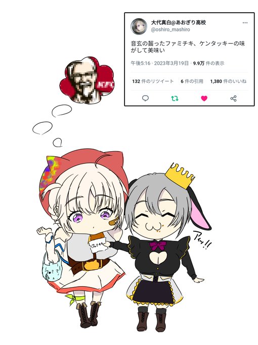 ちょっと楽描き 音玄ちが齧るとケンタッキーの味になるらしい #大代真白 #山黒音玄 #あおぎり高校 #あおぎり高校美術部