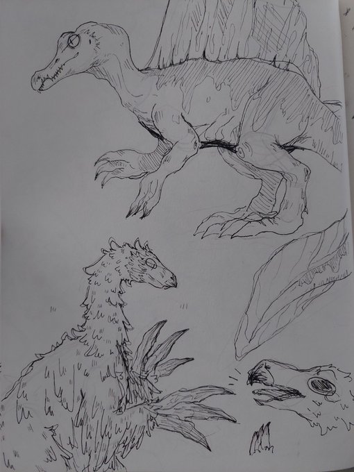 Estudio de un Espinosaurio y un Therizinosaurio Uwu #paleoart #dinosaur #paleontology #drawing #art #sketch #Sketching