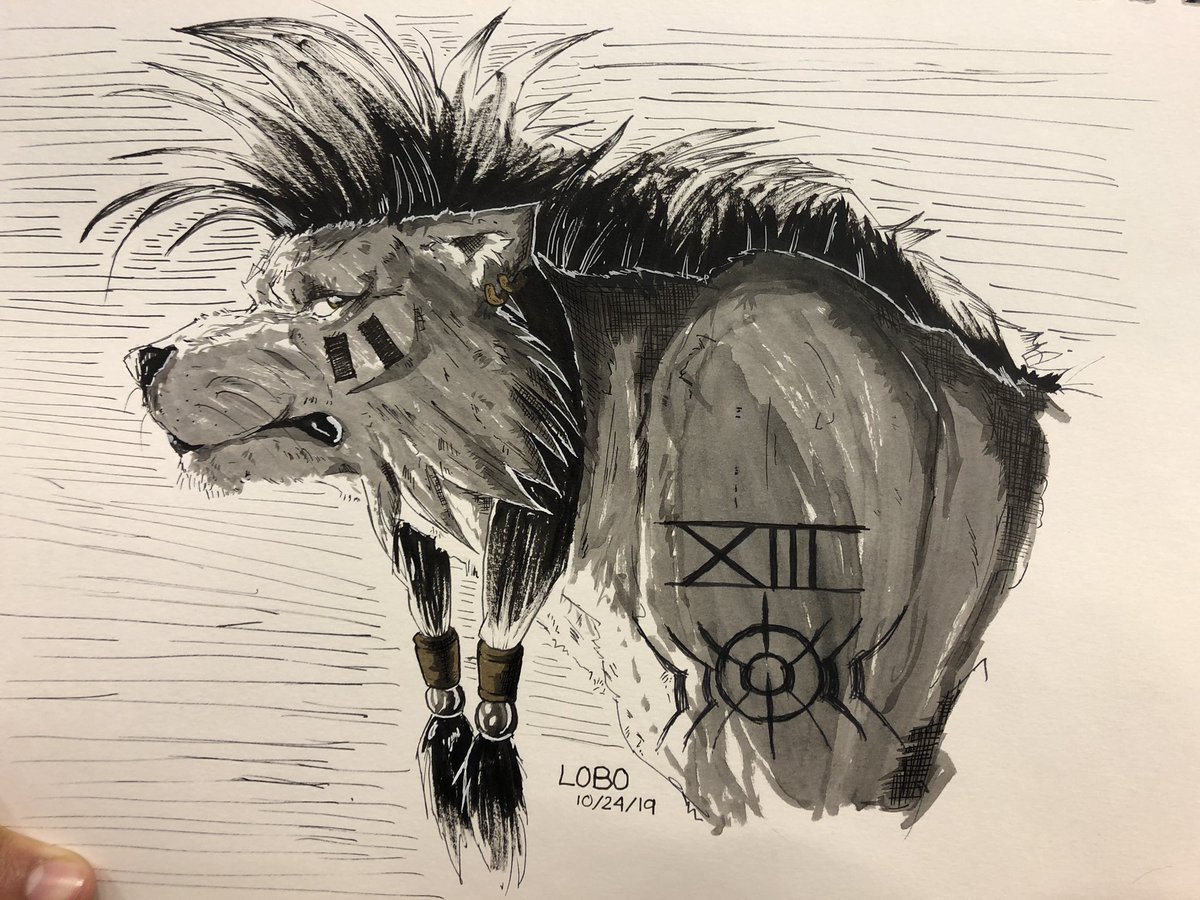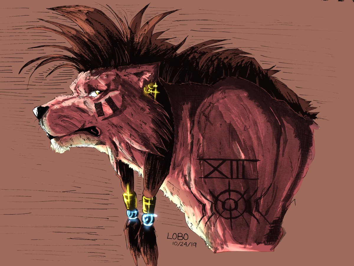 Red XIII Drawing traditionally/ adding color and other effects digitally 😩 #fanart #ff7 #digitalart #drawing #inktober #traditionalart #artist #ArtistOnTwitter #lobodraws