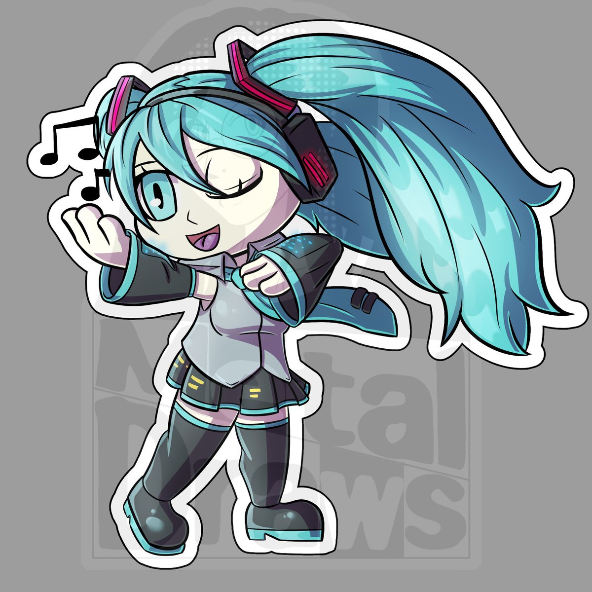 Estoy pensando en hacer stickers así de varios personajes para vender acá donde vivo. Ustedes dicen que la gente compraría stickers asi? '3' PD: Pongo mi firma como marca de agua porque esta clase de dibujos pienso hacerlos merch -w-" #Stickers #chibiart #HatsuneMiku #digitalart