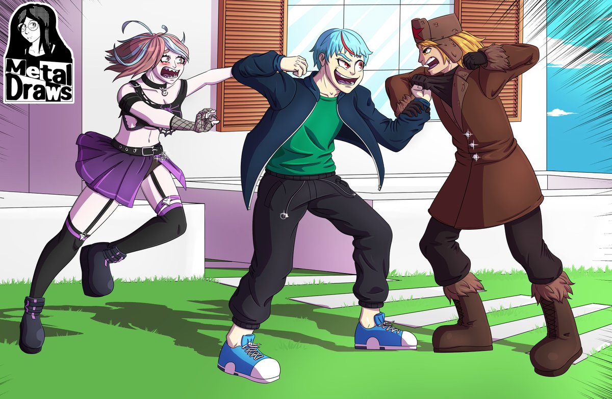 **"Los enemigos han caido!** **Vamos a terminar con ellos!"** Aquí un fan art estilo All-Out Attack de: Mi @SmashuFlashu @spicyshumai @Civerr01 @FapBrosGapa @AngelofDarkFire @LopyLopunny y @DustMan5 #YoSoySmashu #Persona4 #OC #digitalart