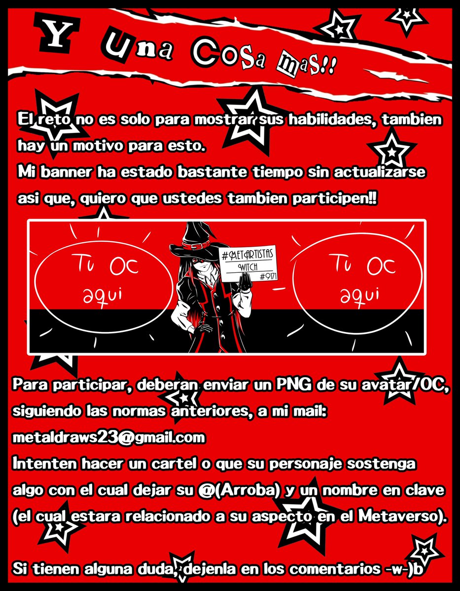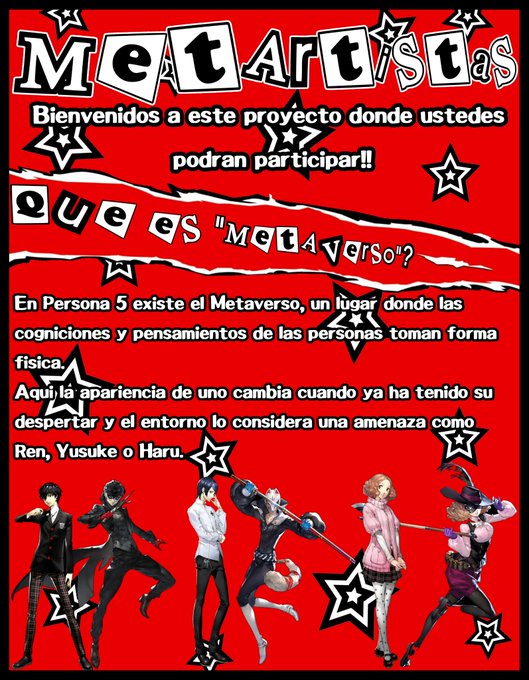 Y después de un largo tiempo, llego el momento de reunir... A los #Metartistas !! Este es un proyecto que hace tiempo quería traer y espero que les interese participar y compártanlo 'w' Dejo aquí mi mail: metaldraws23@gmail.com #Persona5Royal #ArtistOnTwitter #OC #DigitalArtist