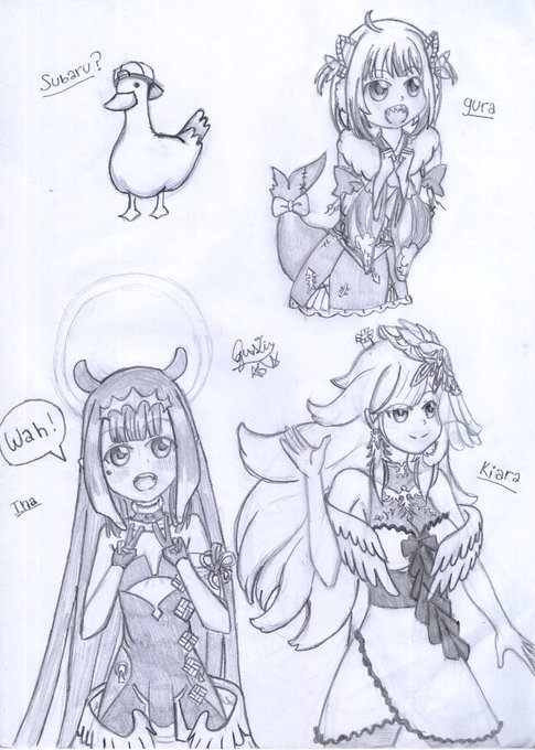 I had planned to draw only the girls of #hololiveEnglish but I ended up drawing Subaru? #ใใญใใคใณใถในใใซ #hololivefanart #ArtsOfAshes #gawrt #inART #traditionalart